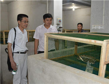总经理郭德志向协会一行介绍蛇毒孵化过程